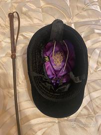 Somerset Cappello Equitazione Con Imbracatura In Velluto Nero Taglia 53 Ideale per ragazzino di anni 10/12. Frustino in regalo. Ottimo regalo per ragazzino alle prime esperienze a cavallo