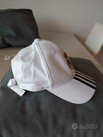 Vendo cappello marca Adidas con logo del Real Madrid. Nel lato sinistro c'è una stampa celebrativa dei 110 anni dalla fondazione del Real Madrid, dal 1902 al 2012, quando era allenata da José Mourinho, e Cristiano Ronaldo era il capitano.