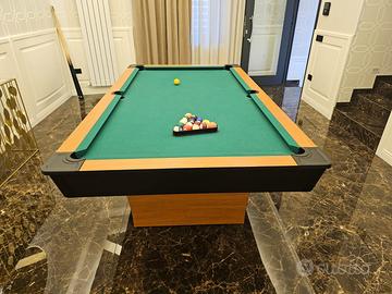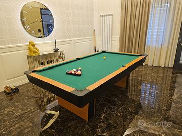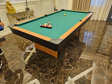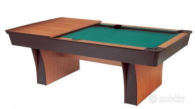 Dimensione 8 piedi (224X112CM campo gioco), per ogni esigenza di spazio, il biliardo si trasforma facilmente in tavolo da pranzo richiedendo le apposite piane di copertura.