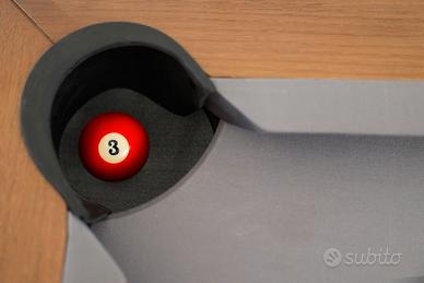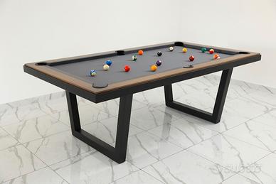 ROBY7, è un tavolo da biliardo lineare, robusto e versatile. La struttura elegante e squadrata con l’aggiunta di un top superiore diventa un tavolo raffinato. Abbiamo ridefinito l’idea di gioco ad alte prestazioni, trasformando il biliardo ricreativo in un arredamento raffinato versatile e divertente. Una combinazione perfetta di funzionalità e design Artigianale Made in Italy. Il Biliardo ROBY 7’ è una creazione innovativa e originale. Completamente Personalizzabile. La linea di biliardo più sottile al mondo, grazie ad un ingegnoso sistema di costruzione questo magnifico prodotto racchiude sponde, telaio, ardesia e sistema di raccolta bilie in appena 7cm di spessore. Nonostante l’apparente leggerezza, è un modello molto pesante e stabile, un biliardo Al 100%. CARATTERISTICHE: Struttura – Metallo e melamina Campo gioco – Ardesia pezzo unico 7’ (200 x 100 cm) Sponde – Professionali Piedini - Regolabili Misure esterne – 230 x 130 cm Altezza da terra con tavolo montato – 79 cm Peso netto – 220 Kg Uso – Interno Accessori inclusi – 4 stecche; set bilie numerate Ø 57; scatola gesso; triangolo per bilie; Offriamo possibilità di trasporto e montaggio in tutta Italia (costo aggiuntivo). Visita anche il nostro sito: www.tnbiliardi.com