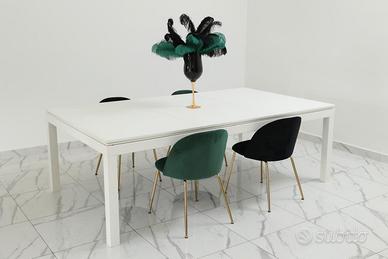 La struttura elegante e squadrata con l’aggiunta di un top superiore diventa un tavolo raffinato.