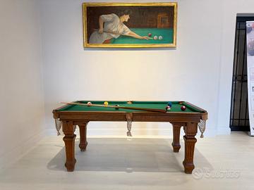 Carambola Professionale con piano in ardesia . Carambola vintage costruita nel 1923 per un imbarcazione di lusso dell’epoca. Completamente in legno massello. Panno nuovo e completa di tutti gli accessori d’uso nuovi. Misure campo gioco: 146x70CM. Misure Esterne :88x163CM. Spediamo in tutta Italia (costo aggiuntivo). Offriamo anche possibilità di trasporto e montaggio a domicilio nel raggio di 500KM (costo aggiuntivo). Visita anche il nostro sito: www.tnbiliardi.com troverete una vasta gamma di calcio Balilla Biliardo ecc