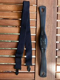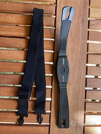 Fascia per rilevazione battito cardiaco durante attività fisica. Possibilità di trasmissione codificata oppure libera con dispositivo (non incluso).