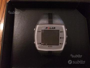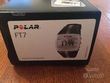 Vendo un cardiofrequenzimetro Polar ft7. Il cinturino è appena stato cambiato e la banda toracica non è mai stata usata. Usato come orologio per un breve periodo di tempo, è perfettamente funzionante . L'unico piccolo difetto è una piccola crepa sul vetro in basso a sinistra visibile sulla foto . Non preclude la visione del display . Bisogna comprare una batteria nuova . Vendo causa inutilizzo.