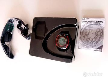 Cardiofrequenzimetro Fitness con 28 Funzioni - Pulse Computer Fitness - con Trasmissione Wireless per Controllo Frequenza Cardiaca Nuovo, in confezione originale. La confezione contiene: 1. Cardiofrequenzimetro 2. Manuale di istruzioni 3. Fascia elastica Questo dispositivo è un Pulse Computer Fitness, identificato come un orologio per il monitoraggio della frequenza cardiaca e dell'attività fisica. - Frequenza Cardiaca: Misurazione dei battiti al minuto (BPM). - Fascia Pettorale: Il kit include una fascia elastica (visibile a sinistra nell'immagine) da indossare intorno al torace per una rilevazione più precisa del battito. - Funzioni Orologio: Include cronometro, sveglia e visualizzazione di data e ora. - Colori: Nero e rosso.