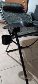 sedia nuova con porta bibite incluso e cuscino rimovibile. mai usata,mai visto il sole, ancora nella confezione originale, uscita dalla scatola solo per fare le foto. sedia/sdraio ottima e super comoda con doppio utilizzo. vendo perche non la uso e non mi va di tenerla li ferma. a prezzo pieno costerebbe tra i 150 e i 170 € ma la vendo a 120€ non trattabile.
