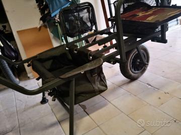 Carrello Carpfishing tenuto molto bene, con borse in rete e borsa porta ruota pagata 50€ solo consegna a mano casa mia.. Mestre ve.