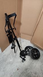 Vendo carrello da golf - due ruote - ripiegabile, ruote estraibili, supporto per score, leggerissimo. Dotato di cinghiette per fissare la sacca. Usato una volta, praticamente nuovo