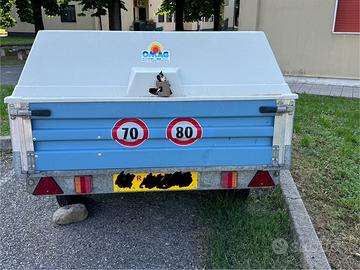 Carrello per trasporto go-kart. Può ospitare un go-kart rimuovendo entrambi i paraurti. Dotato di sponda posteriore ribaltabile come visibile in foto. I fari posteriori sono stati sostituiti con modelli a LED.