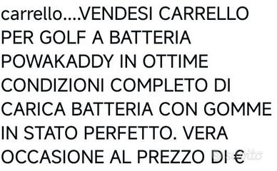 .VENDESI CARRELLO PER GOLF A BATTERIA POWAKADDY IN OTTIME CONDIZIONI COMPLETO DI CARICA BATTERIA CON GOMME IN STATO PERFETTO. VERA OCCASIONE AL PREZZO DI € 420