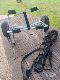 Carrello per kayak marca decathlon nuovo mai usato. Condizioni impeccabili. Prezzo nuovo 49 euro. No perditempo.