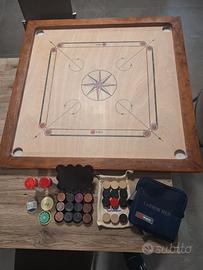 Vendo per inutilizzo perfetto Carrom set professionale con bordi in legno di mango 3 e quindi più duri per un migliore rimbalzo e un piano di gioco più lucido spesso 4 mm per un peso totale di 8 kg, dimensione quadrata ufficiale 83,8 cm per 83,8 cm e una superficie di gioco di 73,7 cm x 73,7 cm.