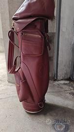 Rara sacca da golf di Cartier, completa di copri legni, chiusura e custodia trasporto. Piccola abrasione alla base. Spedizione a carico acquirente
