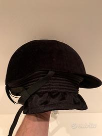 Caschetto da equitazione da donna in velluto nero della Fouganza. Nuovo mai usato.