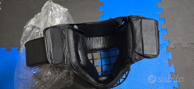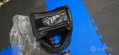Casco con Griglia Estraibile Leone Fighter, taglia M perfetto per evitare i colpi al volto. Questo caschetto è stato ideato per chi si avvicina agli sport da combattimento e, ancora inesperto, vuole evitare traumi al viso. L'imbottitura protegge tutto il capo e offre la massima sicurezza. La pratica chiusura a velcro consente di indossarlo e toglierlo con estrema semplicità.