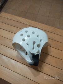 non e mai stato usato,nuovo sensa cartellino,presenta solamente due iniziali come si possono vedere nella parte interna con il pennarello rimuovibili.Il caschetto non presenta alcun difetto