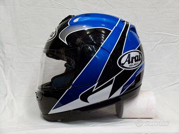 Vendo casco Arai RX7-RR4, taglia L, colorazione Kenny Roberts Jr., usato, perfettamente funzionante. Corredato da visiera trasparente, autografata da Kenny Roberts Junior all'autodromo del Mugello, il 28 Maggio 2000. Inserti superiori e guanciali di spessore maggiorato, per calzata da pista. Qualche segno di utilizzo ma in buone condizioni generali. Completo di sacca originale Arai e carton box. Visibile a Milano zona Piazza Abbiategrasso, si vende a Euro 250.