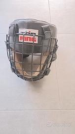 Casco per allenamento arti marziali e difesa personale con grata anteriore.