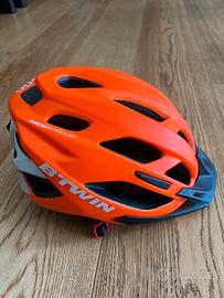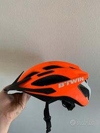Casco bici BTWIN decathlon arancione e nero. usato pochissimo, praticamente nuovo. Misura 53,59 cm, 286 gr.