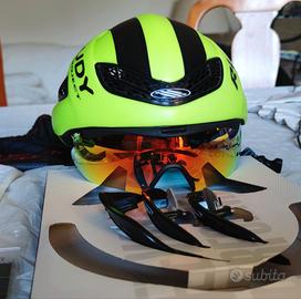 Casco da strada poco usato e perfettamente conservato, completo di mascherina clip-on (mai utilizzata), accessori vari per la modulazione della ventilazione e sacca contenitore. Misura M