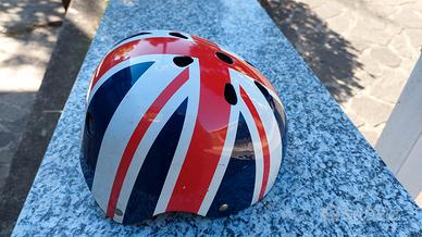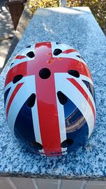 Casco bicicletta per bimbi. Circonferenza da 48 a 52 cm regolabile. Colore bandiera inglese. Perso 360 g
