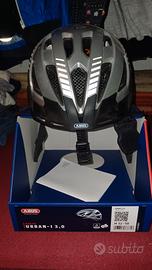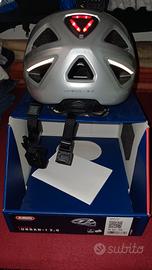 Casco da bici marca ABUS, modello URBAN-I 3.0, colore argento, luce posteriore integrata modalità sia fissa che intermittente, taglia L 56-61 e M 55-58, nuovi