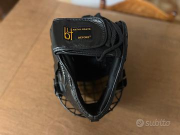 Vendo casco da combattimento professionale Metal Grate BEFORE™, in elegante colore nero con dettagli in oro. Ideale per sport da contatto come boxe, MMA, muay thai, kickboxing, ecc.