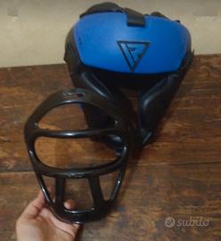 casco da combattimento o rugby, mai usato nuovo, ha anche una protezione davanti rimovibile