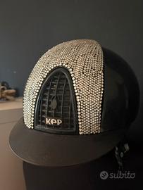 Casco da equitazione Kep Italia, con i brillantini messi a mano. Visiera Standard. Lo vendo con fodera e borsa originale.
