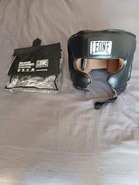 Casco protettivo per sport da combattimento (Boxe, Kickboxing, Muay Thai) marca Leone, con parazigomi.