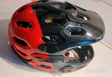 Casco mountain bike MTB, marca BELL super 2R MIBS, mentoniera staccabile, misura 55/59, peso 775 grammi, anno 2020. Il casco, essendo usato, presenta alcuni graffi e una bozza sul lato( come da foto). L'ho fatto vedere al concessionario che dice che non ne è compromessa l'integrità. Spedizione a carico dell'acquirente con tutto subito.