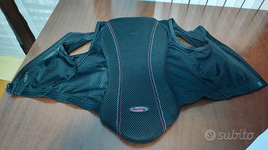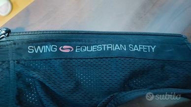 Casco equitazione Belstar bambina in velluto nero con visiera e fiocco sul retro tg. 51 nuovo. In regalo corsetto paracolpi schiena usato ma in buone condizioni tg. 5-6 anni
