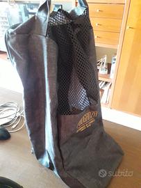 Casco, zaino porta stivali, guanti e gemelli per equitazione