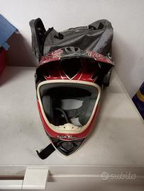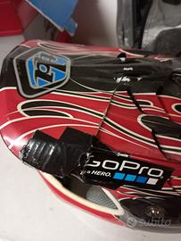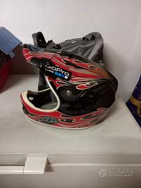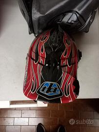 regalo casco integrale da mountainbike Troy Lee Design modello D2 in carbonio, taglia MD/LG, chiusura laccio a doppio anello. una sola caduta che ha incrinato la visiera come da foto.