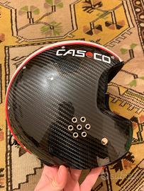 Vendo casco jet in carbonio, marca Casco, colore bianco con dettagli neri e profilo rosso.