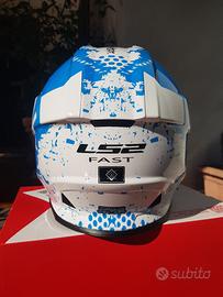 caSco NUOVO mai indossato taglia L. mod. MX 437 FAST ancora con cartellino, sacca di trasporto e scatola. il Casco MX Fast di LS2 dispone di una tecnologia avanzata e un design con grafiche accattivanti che incontrano i gusti dei piloti motocross, e non solo. La calotta è realizzata in policarbonato leggero e resistente, un materiale innovativo KPA ultra leggero che offrre la giusta flessibilità e la giusta capacità di assorbimento energetico. Gli interni traspiranti e ipoallergenici sono totalmente removibili, mentre il sistema di ritenzione conta una pratica e sicura chiusura con fibbia a Doppia D. - Peso: 1300 +/- Interni realizzati in tessuti tecnici ipoallergenici che assorbono l'umidità in modo da mantenere fresco il pilota durante la guida. - Imbottitura tagliata con il laser: adattandosi perfettamente alle curve del viso del pilota, SICUREZZA: - Chiusura con fibbia doppia D - Sistema di Rimozione Rapida - Cinturino rinforzato - Multidensità EPS SISTEMA DI VENTILAZIONE: - Aperture superiori e sulla mentoniera - Estrattore posteriore su richiesta si abbina maschera FM Muddy Google Racing nuova in colori coordinati al prezzo di 40 euro già scontato del 10%. prezzi fissi già scontati. spese spedizione a carico acquirente. ritiro gratuito in zona como