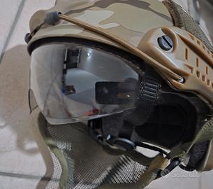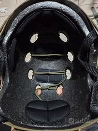 vendo caschetto con visiera incorporata,in più regalo maschera a rete con sgancio rapido e varie patch che già sono messe su.