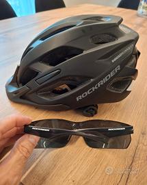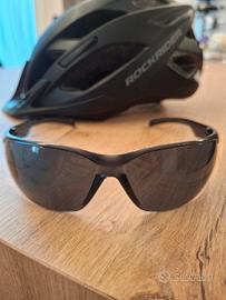 casco e occhiali bicicletta marca rockrider pari al nuovo, usati 2 volte modello st 100 nessun difetto nessun pezzo cambiato o rigenerato molto bello color nero