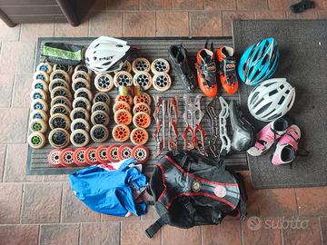 Vendo pattini - ruote - piastre -caschi -zaino-body di pattinaggio di velocità in linea -diverse taglie e dimensioni .
