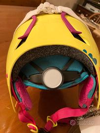 Casco sci regolabile 6/10 anni colore giallo con interno azzurro +occhiali sole . Buono stato