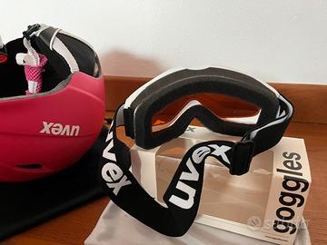 Set casco da sci Uvex + mascherina Uvex. Ideale per bambina da 6 a 11 anni. Come nuovo, finitura casco opaca. Disponibile a consegna in zona centro città Bergamo.