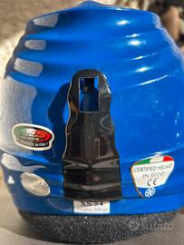 Casco blu prodotto in Italia, marca Mivida, usato 6 volte, come nuovo. Imbottitura perfetta. Adatto a bambini tra i 6 e i 9 anni, taglia XS 54.