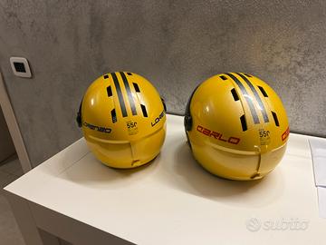 Vendo coppia caschi da sci per bambini dai 6 ai 12 anni taglia 53/56 completi di visiera sollevabile, rotella posteriore di regolazione larghezza…condizioni pari al nuovo.