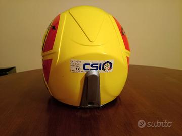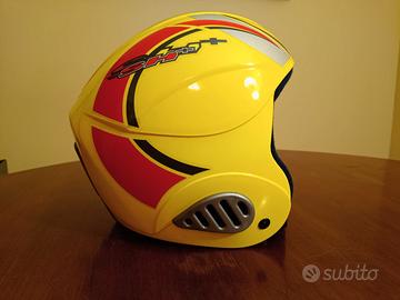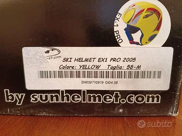 Casco da sci. Marca SH+. Modello EX 1 pro. Taglia 58 L. Colore giallo, interno blu. Completo di scatola originale.