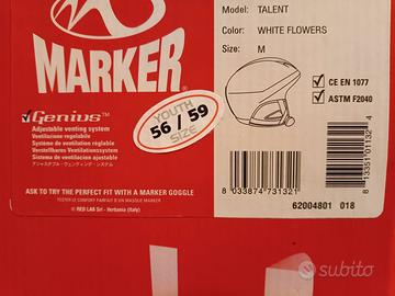 Casco da sci. Marca Marker. Modello Talent. Taglia 56-59 M. Colore bianco, interno grigio. Completo di scatola originale.