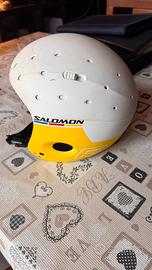 Vendo casco sci Salomon bianco e giallo talia XXL modello racer con paraorecchie rigide per inserimento auricolari apertura laterale destro e sinistro indipendente per areazione. Usato sempre con papalina.