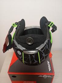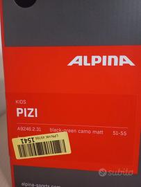 casco da sci e snowboard per bambino/a Alpina, modello PIZI, assolutamente NUOVO, mai usato, con cartellini ancora attaccati e confezione originale. Il modello PIZI è uno dei più sicuri e leggeri della gamma Alpina Kids, ideale per garantire protezione e comfort sulle piste. Caratteristiche del prodotto: Stato: Nuovo con cartellini e scatola originale. Modello: Alpina PIZI (Art. A9246.2.31). Taglia: 51-55 cm (circonferenza regolabile). Colore: Black-Green Camo Matt (Mimetico nero/grigio opaco con dettagli verde fluo). Sicurezza: Costruzione Inmold con guscio interno in Hi-EPS per il massimo assorbimento degli urti e guscio esterno Ceramic Shell antigraffio. Comfort: Sistema di ventilazione integrato e paraorecchie morbidi rimovibili. Chiusura: Fibbia ergonomica facile da usare anche con i guanti. Perfetto come idea regalo o per chi cerca il massimo della protezione per i propri figli con un prodotto certificato e di alta qualità.