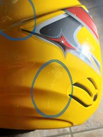⛷️ Casco da Sci / Snowboard per bambino/a, taglia 6-8 anni. Colore giallo acceso (ben visibile sulla neve) con grafiche moderne adesive in grigio e rosso scuro. L'interno è morbido e nero. Articolo igienizzato. Il casco è in ottime condizioni strutturali e sicuro: non ha subito cadute, urti o ammaccature rilevanti. Tutte le cinghie e le chiusure sono perfettamente funzionanti. È presente l'etichetta di conformità CSI (Certificazione di Sicurezza).