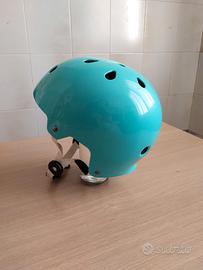 CASCO OXELO PLAY 5 INLINE Skates Skateboard Scooter Helmet - Turquoise, misura 50-54 cm. Protezioni complete (ginocchio, mani e gomiti). Usate da mio figlio di 9 anni. In ottime condizioni perchè usati solo una estate e la primavera successiva insieme ai Roller che vendo in annuncio separato.