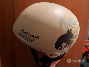 Casco mai adoperato di Decathlon della Quequa taglia 55-56, molto bello con serigrafie originali e sistema air cooling, comfortevole.
